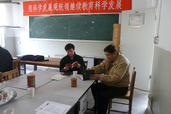 张云龙到达继续教育学院时,适逢该院正在组织党员开展学习实践科学发展观活动第三次集中学习。张云龙与该院全体党员同志一同进行了学习。