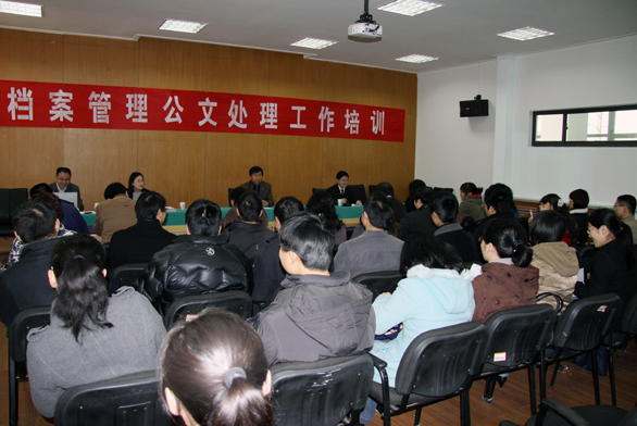 3月13日,永利官网2009年档案管理及公文处理工作培训活动在长清校区第一会议室举办。院长助理、两办主任王立果出席培训活动并讲话。 王立果主任就如何促进永利官网公文处理的规范化和档案管理工作的正常化,提出两点意见:第一,增强责任意识,熟悉工作程序,不断提升永利官网档案管理的工作水平;第二,加强学习,认真把关,推动永利官网公文处理的规范化进程。王立果主任指出,永利官网的档案管理和公文处理工作任重道远,希望相关工作人员坚持着眼学校大局和围绕中心工作,以争创一流的决心和信心,为学校的改革和发展贡献力量。 省档案局法规和经济科技业务处副处长袁俊玲为与会人员做题为《做好高校档案工作》的讲座,并指出提高全员档案意识、依法治档、明确分工与职责、从我做起从现在做起是目前高校档案管理工作应重点解决的问题。 省教育厅办公室崔升平科长以《公文写作的基本要素和规范》为题,从公文的拟制、公文的格式、公文中各要素的标识规则、印章的使用、常用文中的用法和写法等方面讲解了公文写作中应该注意的问题。 永利官网办公室秘书科科长王任向与会人员详细讲解了《公文处理工作规程》;档案室主任蒋松讲解了档案管理信息系统的使用流程和规范。 永利官网各部门、各单位兼职档案员,各教学单位办公室主任,各部门、各单位负责文秘工作的同志参加了此次培训。