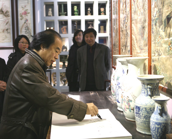 院长等校领导陪同下参观了在长清校区美术馆展出的中国•济南当代国际摄影双年展作品,以及博物馆、数字艺术与传媒实验中心、综合实验中心、特种手工艺实验中心,观看了永利官网宣传片《设计引领生活》。邓福星先生还在参观博物馆、民艺馆时亲笔题字“民俗艺术大观”。