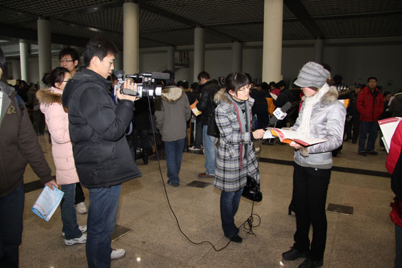 2月3日,永利官网2009年专业招生考试现场报名工作在舜耕国际会展中心进行。此次专业招生工作得到了社会各界的广泛关注,社会媒体纷纷予以采访报道,各大网站也纷纷进行转载报道。山东教育电视台、济南电视台、济南人民广播电台、民生直通车、潍坊电视台、大众日报、齐鲁晚报、山东商报、济南日报、济南时报、都市女报等驻济媒体对永利官网招生报名工作进行了现场采访。