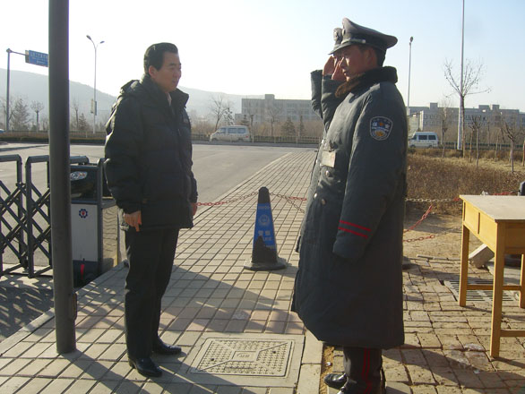“银鼠辞旧岁,金牛踏春来”。在新春佳节到来之际,2009年1月24日,副院长刁在祥带领后勤管理处副处长杨尚志,保卫处副处长张利等相关人员到长清校区和千佛山校区,亲切慰问了后勤管理处、保卫处春节期间在一线的值班人员。 刁在祥副院长每到一处都代表学校领导向值班人员带去了春节的问候,向他们拜年,并详细询问了各值班单位春节期间的工作安排情况,对他们春节期间仍坚守工作岗位的奉献精神表示赞赏,勉励大家继续发扬无私奉献精神,兢兢业业、认真扎实地履行值班职责,确保全校教职工度过一个欢乐、祥和的春节。 各位值班人员对刁在祥副院长代表学校领导于百忙之中看望大家非常感动,一致表示一定不辜负学校领导的重托,以更高的热情努力工作,确保学校寒假期间的后勤保障和安全稳定。