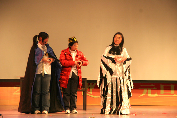 校广播台、院报学生记者还为来宾奉献了精彩节目,相声、歌曲、话剧、小品、乐器演奏、手语等多种形式、多种语言,描绘多彩的青春,演绎多彩的人生。现场精彩不断,掌声不断。最后,晚会在校歌《设计师的摇篮》的合唱声中结束。