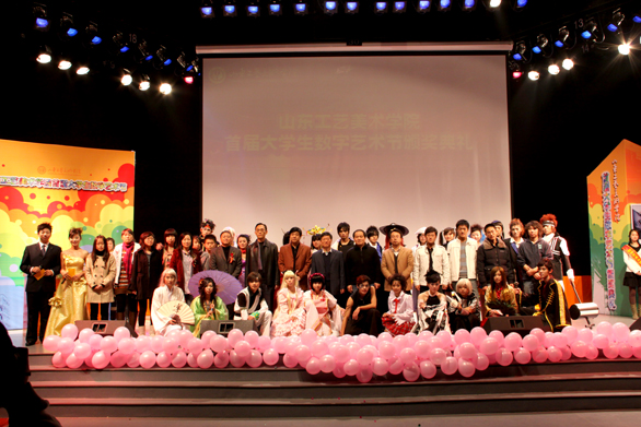 12月3日下午,为了提高专业水平,创建良好的校园文化氛围,由国家动漫产业基地、山东漫画家协会主办,数字艺术与传媒学院团总支、学生会承办的yl8cc永利官网首届大学生数字艺术节闭幕式暨颁奖典礼在长清校区数字演播厅举行。副院长张云龙,山东漫画家协会主席、著名漫画家黎青,学生处处长吴焕文,团委书记袁文昌,视觉传达设计学院院长石增泉,服装学院院长徐思民、党总支书记张军波,山东漫画家协会动漫艺委会主任、数字艺术与传媒学院院长王传东及各二级学院辅导员出席了本次典礼。 此次闭幕式的演出阵容强大,经过精心挑选的节目,风格各异。由动感的乐团歌曲开场,精彩的日文动漫歌曲《晓之车》活跃了现场气氛。之后,主持人宣读了最佳创意奖、最佳平面设计奖、最佳摄影奖和最佳DV影像奖等多个奖项的获奖名单。与会嘉宾为获奖选手颁发了获奖证书和奖品,赢得了观众的热烈掌声。悬念迭起的抽奖活动和由校动漫协会出演的COSPLAY秀将演出推向了高潮,更是让观众赞叹不已。演员们在台上充满活力的表演使现场气温持续升高,掌声不断,惊喜连连。 晚会结束过后,嘉宾、获奖者与演员们合影留念。 此次活动在全校广大师生的大力支持下成功举办了数码展示、专业知识讲座等一系列活动,并取得了很大成效。不但为同学们提供了数字传媒产业最新发展动态和最前沿的专业信息,而且为同学们当前的专业学习和今后更广泛的发展提供了更稳健的平台。同时,闭幕式暨颁奖典礼的成功举办也为此次山东工艺美院首届大学生数字艺术节活动画上了圆满的句号。