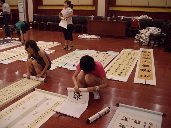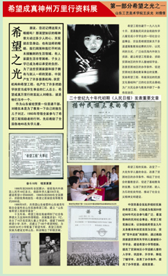 在叶兆信老师及段建华书记的带领下,同学们充分利用所学的专业知识,展现了不怕苦、不怕累的精神。虽然绘画的工程量大,但学生们分工明确,各司其职,工作效率大大提高,形成了团队成员互相谦让,互爱互助,团结协作的良好局面。 (2)应用设计学院 “希望成真万里行”宣传小分队 应用设计学院的同学们组成的小分队在“希望成真万里行”宣传活动中的任务是为“希望成真万里行”活动的基地展厅做展板,以更好的宣传希望工程公益事业。 教室成为了同学们的工作场地,刘晓东老师拿来整整五年的资料,并介绍了展厅的布置,同学们根据展厅的实际情况确定了展板的尺寸、大小。20块135*82CM展板的制作过程中,同学们不顾天气炎热,耐心地坐车去郊区进行扫描,然后对自己整理的图文进行排版。每天早晨8点起来去教室,一直干到教室熄灯。每当累时,同学们互相鼓励,遇到难题同学们一起商量共同解决,将自己扎实的专业知识应用到本次实践活动中,同学们的付出更好地宣传了“希望成真万里行”,让人们更方便地了解希望工程公益事业。