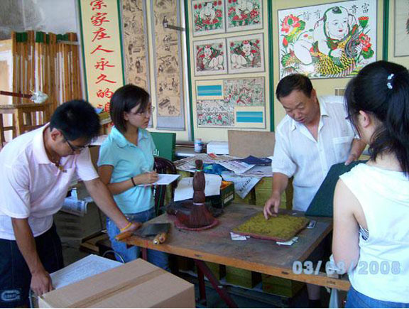 5、调研采风 发挥艺术生的优势,组织广大学生开展艺术调研和采风实践活动,深入民间进行艺术考察。就民间艺术的保护、文化的继承与发展、农村现代化城市化进程中村民社会关系的变化对民居影响等为主题开展专题调研,培养学生“勤于思考、勇于实践”的良好精神风貌以弘扬热爱民族文化的传统,引导学生担负起传承民族文化的责任。 (1) 人文艺术学院调研小分队 7月10日,人文艺术学院社会实践小分队的同学们在张从军院长和来罗军书记的带领下参观考察了四门塔风景区。张院长结合同学们的专业特色生动详细地为大家讲解了四门塔的悠久历史、富有价值的文物古迹等相关知识,使同学们对之有了更深刻的认识和理解,使同学们在开拓眼界的同时,增强了对本专业的进一步理解。 人文艺术学院赴济阳调研民间鼓子秧歌小分队和赴青岛市平度市宗家庄调查木版年画小分队工作开展得也尤为出色,在灵活运用调研方法的基础上,取得了显著的社会实践成果。 通过调研活动,同学们充分发挥了自己的所长,既对当地的民风、民俗有了深入的了解,也对当地旅游业的发展进行了多方面的分析,为当地旅游经济的发展提供了重要的参考依据,充分地发挥了文化服务社会的功能。社会实践活动促使同学们更积极的寻找自身定位,加强综合素质的培养,为他们将来服务社会打下了基础。学校将不断拓宽类似的实践领域,深化暑期社会实践的层次,为同学们提供更多与专业相关的实践途径和场所,使他们能充分的将所学专业用于实际,使社会实践活动更具有针对性,更专业、更深入,为永利官网青年学生的成长提供良好的发展平台。