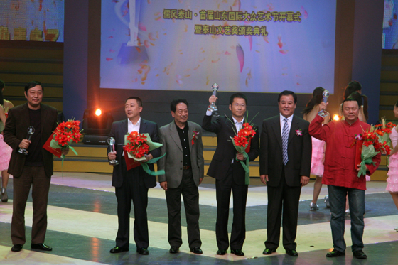 “泰山文艺奖”是中共山东省委、山东省人民政府批准设立的全省文艺界的综合性文艺大奖,奖项的设立在于激励全省广大文艺工作者积极参与全省文化建设,推动文艺事业和文化产业的大发展大繁荣。本次评奖在全省共征集电影、电视、戏剧、音乐、美术、摄影、民间文艺、舞蹈、书法等12 个艺术门类的参评作品 547 件,共评出特别荣誉奖 1 个,一等奖 20 个,二等奖 58 个,三等奖 78 个。艺术突出贡献奖申报人 75 名,共评出13 名。