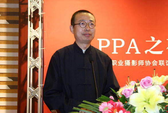 美国职业摄影师协会总裁丹尼斯•格拉夫特致辞。他对大家的到来表示欢迎,表示很高兴给大家提供此次联谊的机会,希望大家在酒会上结识更多的朋友。