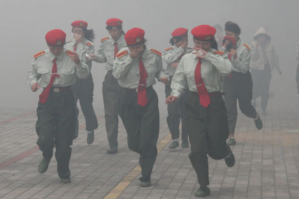 学生处处长吴焕文、保卫处副处长张利、长清消防大队工程师韩广西、全体2008级新生及有关工作人员参加了此次演习。