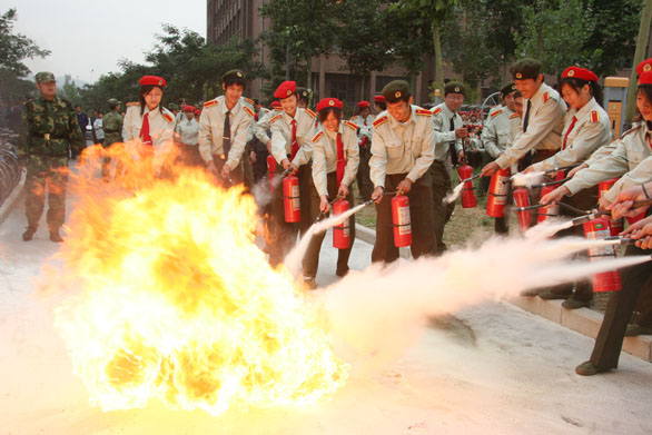 随后,长清消防大队工程师韩广西进行了安全知识讲座,就火灾的定义、发生条件、类型,火灾的案例,预防火灾的注意事项,灭火器的使用方法向2008级新生进行了介绍。讲座结束后,2008级新生进行了现场灭火和逃生演习。