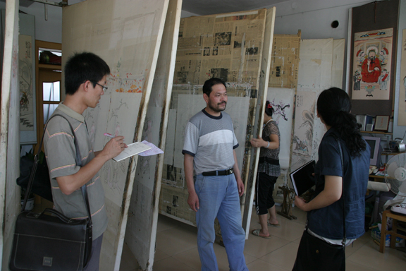 院长带领考察组先后考察了临沂市费县、莒南的石雕;郯城的中国结、镟木玩具、草柳编;兰山的彩印花布;河东、临沭的草柳编;潍坊市杨家埠的年画、风筝;高密的扑灰年画、玩具、剪纸、红纸;菏泽市曹县的桐杨木制作、巨野的农民绘画、鄄城的鲁锦等十余个项目。先后采访、调查手工艺村落21个、手工艺企业与作坊71家、手工艺人73位,组织座谈会3次,对不同地区的社会历史文化环境、自然地理资源、经济发展状况、手工艺传统、手工艺行业总体发展现状、手工艺产业经营状态及经营模式、手工艺产业生产组织形式、手工艺产业链、手工艺产业集聚形态、现代手工产品形式、手工艺市场、手工生产农户生存状态及生产形式等问题进行了深入的调查与探讨,获取了扎实而系统的数据资料,为项目进一步的深入研究提供了充足的准备。