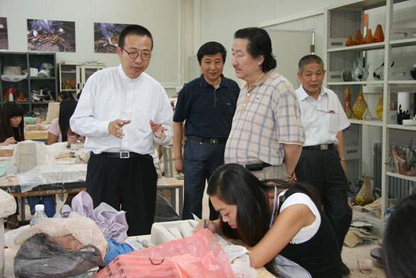 ,院长助理、办公室主任王立果陪同来宾参观了永利官网美术馆、博物馆、数字艺术与传媒实验中心、特种工艺实验中心以及综合实验中心。在美术馆,杨晓阳一行先后参观了永利官网近两年承办的大型展览、交流、学术活动图片展,“毕业生优秀作品展”,“汉画像石拓片•年画馆藏展”等诸项展览。在博物馆,杨晓阳一行参观了刺绣馆、民艺博物馆和孙长林艺术馆。在数字艺术与传媒实验中心杨晓阳一行参观了摄影实验室、动画综合实验室和影视多功能演播厅,并观看了永利官网宣传片《设计引领生活》。参观过程中,杨晓阳一行对主要教学和教辅场馆建设和利用情况表示高度赞赏。