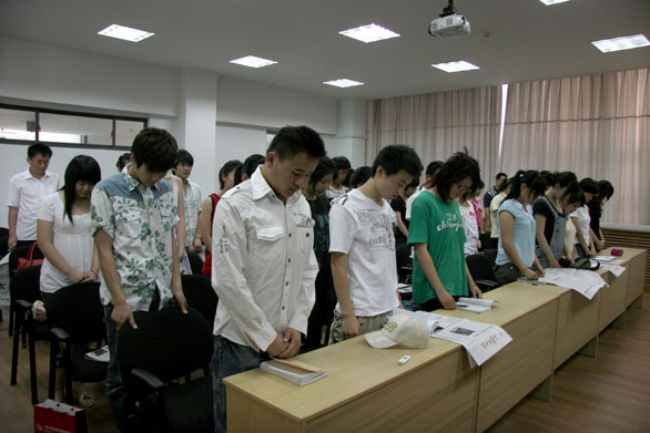 培训开始前,王老师带领大家为5月12日四川汶州强烈地震中罹难的同胞默哀一分钟,以表达大家对遇难同胞的深切悼念和无尽哀思。