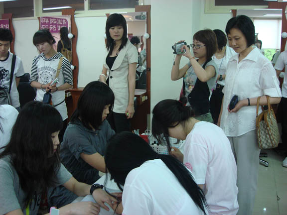 比赛内容分为化妆比赛(时尚创意化妆和新娘化妆两种类型)、皮肤美容比赛和美甲比赛三部分。整个比赛过程在安静的化妆实验室进行,点评由韩国各相关专业著名教授担当。虽然是高中组的比赛,韩国高中选手化妆的透明精致、美甲艺术的时尚创意以及皮肤美容精湛的操作技法给观摩同学今后的学习带来了许多启发。