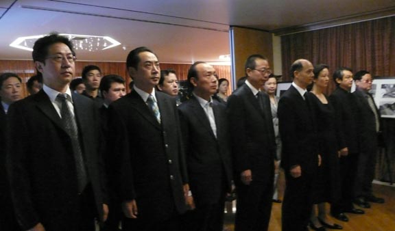 5月19日考察团一行希腊华人一起在中国驻希腊大使馆悼念祖国汶川地震遇难同胞