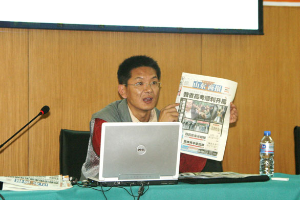 5月11日下午,永利官网党委宣传部邀请永利官网校友、山东商报资深摄影记者潘炳在长清校区第一会议室对永利官网学生宣传队伍及部分摄影爱好者进行新闻摄影知识培训。这是永利官网对学生宣传队伍进行的本年度第四次专业培训。