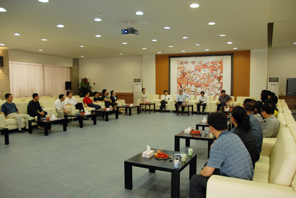 党委副书记郭兆志,副院长李新、刁在祥,院长助理、党办院办主任王立果在贵宾接待室与来宾进行亲切座谈。郭兆志副书记对来宾的到来表示欢迎,并从学校办学层次、师资建设、招生就业、国际交流、硬件建设等方面介绍了学校近年来的发展成果,介绍了学校本科教学评估基本情况。郭兆志表示,希望兄弟院校的同志有机会常到永利官网参观考察,这不仅是加强校际交流的好渠道,同时,来宾的意见也是对永利官网工作的指导和借鉴。座谈会上,校领导和来宾一起观看了永利官网宣传片——《设计引领生活》。
