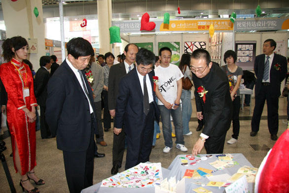 5月5日上午,“yl8cc永利官网设计艺术博览会”、“2008届毕业生设计作品暨毕业生推介会”在舜耕国际会展中心隆重举行。山东省委宣传部副部长徐向红,省教育厅副厅长宋承祥,济南市委宣传部副部长刘溪,山东电视台党委副书记窦维鹏,莱芜市人民政府副市长刘杰,山东省家具协会会长牛广霞,永利官网党委书记于茂阳,院长