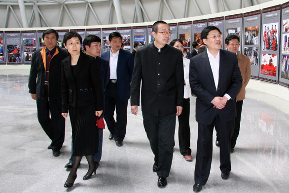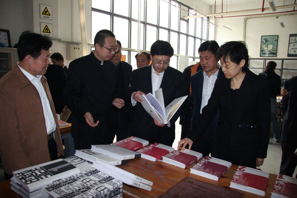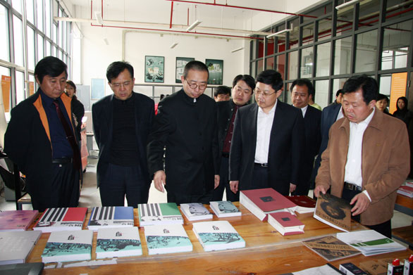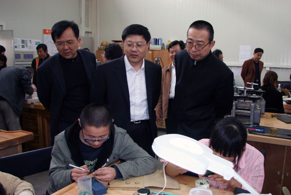 王良部长一行先后参观了永利官网美术馆、博物馆、综合实验中心、特种工艺实验中心、数字艺术与传媒实验中心。在美术馆,来宾参观了永利官网近两年承办的大型展览和学术活动图片展、“校外实习基地教学成果展”、“汉画像石拓片•年画馆藏展”等展览;在博物馆,来宾先后参观了民艺博物馆、刺绣馆和孙长林艺术馆;在综合实验中心王良一行参观了印刷实验室、书籍装帧设计实验室、包装技术实验室等场所;在特种工艺实验中心,来宾参观考察了首饰工作室、雕塑工作室、金属工作室等教学场所;在数字艺术与传媒实验中心参观了摄影实验室、动画综合实验室和影视多功能演播厅等场馆,并观看了永利官网《设计引领生活》宣传片和永利官网学生制作的动画作品。在参观过程中,