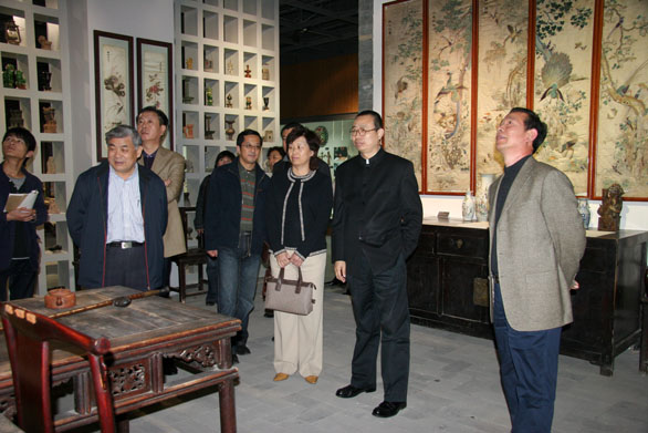 省物价局局长陈充一行先后参观了永利官网美术馆、博物馆、综合实验中心、特种工艺实验中心、数字艺术与传媒实验中心。在美术馆,省物价局领导先后参观了永利官网近两年承办的大型展览和学术活动图片展、“2005—2007届毕业生优秀作品展”、“校外实习基地教学成果展”、“客座教授摄影作品展”、“汉画像石拓片•年画馆藏展”等展览;在博物馆,来宾先后参观了民艺博物馆、刺绣馆和孙长林艺术馆;在综合实验中心来宾先后参观了印刷实验室、书籍装帧设计实验室、包装技术实验室等场所;在特种工艺实验中心,参观了首饰工作室、雕塑工作室、金属工作室等场所;在数字艺术与传媒实验中心参观了摄影实验室、动画综合实验室和影视多功能演播厅等场馆,并观看了永利官网《设计引领生活》宣传片。参观过程中,