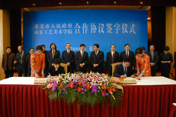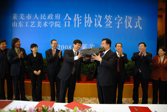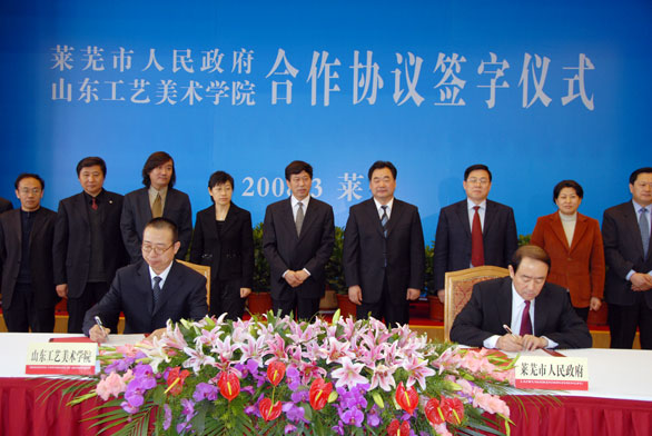 和莱芜市市委副书记、市长马平昌分别代表永利官网和莱芜市政府签署两单位《合作协议书》。副院长李新和雪野旅游区工委书记、管委会主任贺伟代表双方签署《雪野文化创意研发基地合作协议书》,签约仪式上,双方互赠礼品,并合影留念。