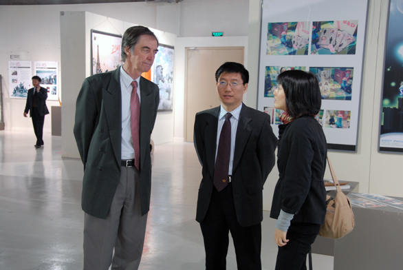 在美术馆,依恩•霍华德一行先后参观了永利官网近两年承办的大型展览和学术活动图片展、“2005—2007届毕业生优秀作品展”、“校外实习基地教学成果展”、“客座教授摄影作品展”、“汉画像石拓片•年画馆藏展”等展览;在博物馆,来宾先后参观了民艺博物馆、刺绣馆和孙长林艺术馆;在数字艺术与传媒试验中心,来宾参观了摄影实验室、动画综合实验室和影视多功能演播厅等场馆;随后,依恩•霍华德一行参观了特种工艺实验中心内的染织工作室、玻璃艺术工作室、首饰工艺工作室等场所;他们还考察了综合实验中心内印刷实验室、书籍装帧设计实验室、包装技术实验室等处。参观过程中,依恩•霍华德教授不时对永利官网教学和教辅场馆建设表示赞赏。