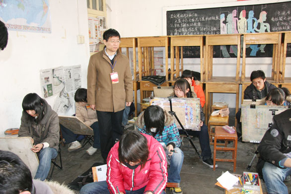 2月21日上午,永利官网2008年招生专业考试史论类、理科类考试在应用设计学院分院考点拉开帷幕。校领导张云龙副院长及有关工作人员来到应用设计学院分院驻地山东省电影学校,与山东省电影学校校长安立元等领导共同视察了史论类、理科类考点。