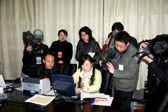 2月20日,永利官网2008年招生专业考试在济南舜耕国际会展中心拉开帷幕。上午6时30分,校领导、纪委人员,审题专家和山东电视台、齐鲁电视台、山东商报、山东教育电视台、济南时报等媒体记者聚集到招生现场办公室。在纪委人员和媒体记者全程监督下,媒体代表抽取首场考试试题。