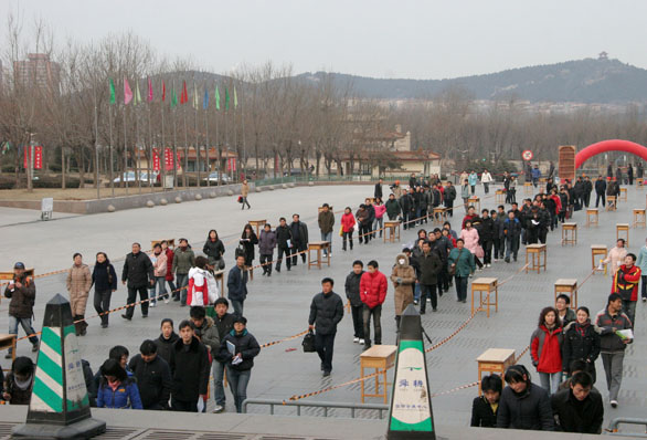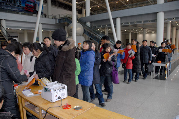 2月18日上午,济南舜耕国际会展中心广场,来自全省各地的考生及家长们早早来到永利官网2008年专业考试报名现场排起了队伍。在现场工作人员的细心引导下,上午7:30,考生有序地进入会展大厅进行现场报名,永利官网2008年专业考试现场报名正式拉开帷幕。