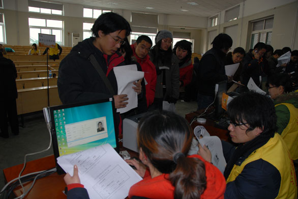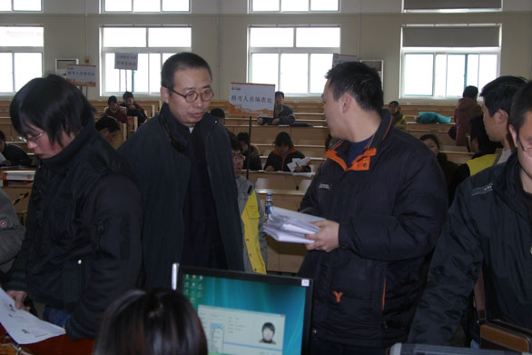 、副院长刁在祥视察了集体报名现场,询问了报名情况,并要求有关部门和人员要本着方便考生、服务考生的原则,做好报名服务工作。