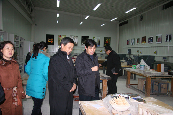刘士祥、江新正一行先后参观考察了永利官网长清校区美术馆、博物馆、数字艺术与传媒实验中心、特种工艺实验中心和综合实验中心。在美术馆,省教育厅发展规划处领导先后参观了永利官网近两年承办的大型展览、交流、学术活动图片展、“2005—2007届毕业生优秀作品展”、“中•韩第二届毕业生优秀作品展”、“校外实习基地教学成果展、“汉画像石拓片•年画馆藏展”等展览;在博物馆,刘士祥、江新正一行参观了刺绣馆、民艺博物馆和孙长林艺术馆;随后,他们在数字艺术与传媒试验中心考察了摄影实验室、动画综合实验室和影视多功能演播厅等场馆;在特种工艺实验中心,他们先后考察了染织工作室、玻璃艺术工作室、首饰工艺工作室等场所;并考察了永利官网综合实验中心内印刷实验室、书籍装帧设计实验室、包装技术实验室等场所。参观过程中,省教育厅发展规划处领导耐心询问了永利官网学科建设、实验室建设等情况,并对永利官网主要教学和教辅场馆建设和利用情况表示高度赞赏。