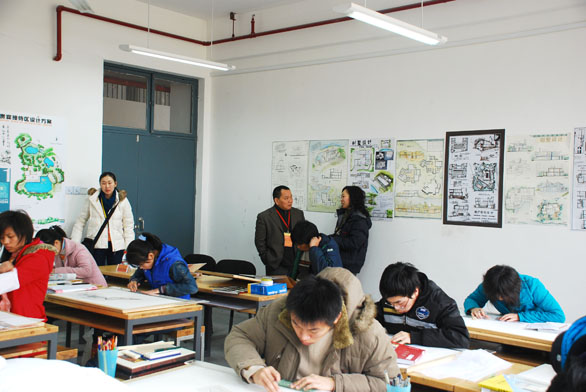 评估专家许平教授在考察完石媛媛讲师的课程后针对同学们的作图、课程安排,以及下一步所授课程的方向等问题与石媛媛老师进行了交流 。评估专家许平教授带着满意的神情离开了教室。