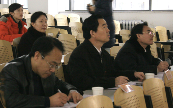 ,评建办常务副主任、公共课教学部副主任丁炳堂,听取了各教学单位教师代表的授课。