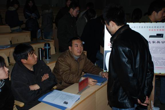 为更好地拓宽毕业生就业渠道,为企业和毕业生提供良好的交流平台,拓展教学实践基地,12月16日上午,应用设计学院举办2008届家具设计专业毕业生专场招聘会。