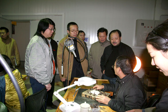 院长考察了雕塑工作室、陶瓷工作室、金属工艺工作室、首饰工艺工作室、玻璃艺术工作室等实验室。在综合实验中心,