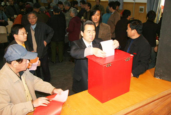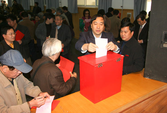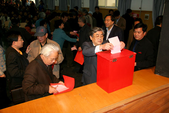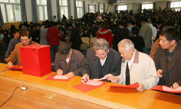 大会首先宣读了选举办法草案和选举委员会总监票人、监票人和总计票人、计票人名单,全体选民举手表决,一致同意该选举办法和监票、计票名单。总监票人、监票人及工作人员到位工作,检查票箱。全体选民持选民证领取选票、写票,并将选票投入票箱。