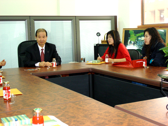 田一平校长首先询问了考察团在韩国的考察情况,并赠送了考察团师生精美的礼物。田一平校长说:“韩国20年以前是很贫穷的国家,20年后发展到现在这样全靠在海外留学的赤子,是他们学到了东西回来报效国家,所以希望同学们在生活和学习中要有梦想,只要有了理想,才能做出大的事业,希望你们来韩国的学习能成为中韩友好交往的纽带。”之后两校师生进行了自由的交流。