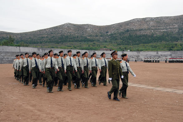 在激昂的解放军进行曲中,2007级新生开学典礼暨军训汇报表演拉开了帷幕。院长