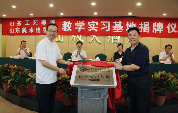 与山东美术出版社社长刘传喜共同为校外实习基地揭牌,这也标志着永利官网的又一个校外实习基地正式成立。
