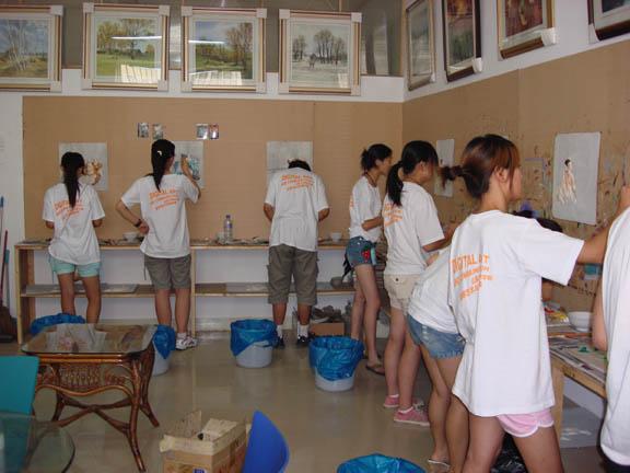张云龙副院长同唐人书画院张建华院长进行了座谈交流。张院长对山东唐人书画院为学生提供的学习实践机会表示真诚的感谢。他 指出,社会实践是引导和激励广大青年学生积极投身推动科学发展、促进社会和谐的实践,是落实科学发展观,提高社会适应能力、创业能力、创新能力的实践。学生通过与专业的紧密结合,增加了实践经验,提高了实际操作能力,是对校园内课堂教学的延伸,是实践育人的重要举措。今年的大学生暑期社会实践更有特别的意义,永利官网第一次将暑期社会实践列入必修课,也是学校主体迁入长清校区以后的第一次暑期社会实践,而且山东唐人书画院也是今年走访的第一站。而后,书画院的张院长也介绍了画院的工作情况和永利官网学生在此学习、制作浮雕油画的过程,书画院的领导对永利官网学生的专业技能和在此次学习中的学习态度表示充分的肯定。