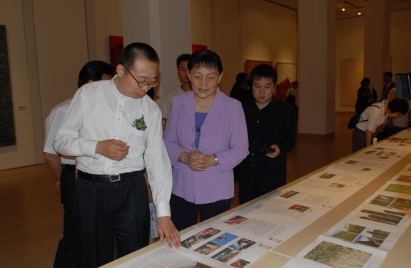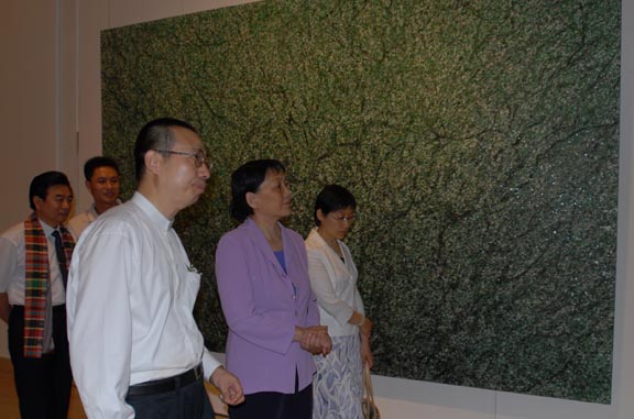 2007年5月23日,当代·民间——潘鲁生当代艺术与民艺文献展在中国美术馆开幕当天,全国政协副主席、中国民主同盟中央常务副主席张梅颖在yl8cc永利官网院长潘鲁生等人的陪同下参观了展览。 张梅颖对潘鲁生的艺术创作和民间艺术学术研究给予了很高的评价。张梅颖说,潘鲁生的作品跟一般画家创作的水墨艺术作品不一样,把民间剪纸、年画门神这些传统的民间的东西变成一种新的,但是又反映中华文化传统的艺术作品,是一种艺术创新,是对中国文化的一种发展,值得研究学习。同时这也是潘鲁生对祖国民间传统文化的千年积淀深刻理解的体现。张梅颖进一步指出,潘鲁生教授对民间艺术的发掘、研究、保护和传承,做出的这些大量工作,关系到我们社会主义新农村精神文明和物质文明的建设和发展。这与农村人民群众切身利益是密切相关的。这也是贯彻党中央落实科学发展观,构建社会主义和谐社会的重要内容。胡锦涛总书记提出了构建社会主义和谐社会的总体目标,这就要求我们,既要实现社会主义新农村经济产业建设,也要大力发展农村文化产业建设,让民间的经济、文化、艺术互动起来,让社会主义新农村建设充满活力。