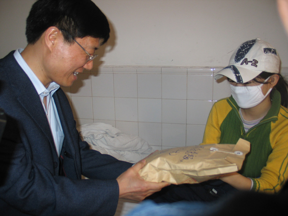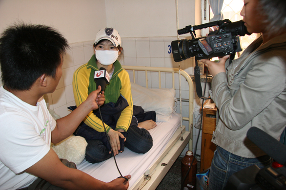 5月11日,学校领导、老师第二次前往诸城市人民医院看望了住院中的王燕同学。此次一同前往的有副院长张云龙、工会主席江德华、服装学院院长徐思民、党总支书记张军波、团总支书记李忠诚,以及王燕所在班级的班长、团支部书记等学生代表。山东电视台、山东教育电视台、山东商报等新闻媒体的记者也随同进行了跟踪采访。