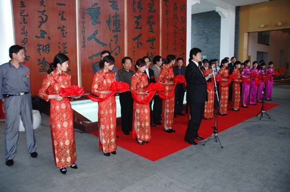 上午十时整,捐赠仪式在人们渴盼的雨声伴奏下如期举行,山东省人大、省政府的领导刘仲泉、王春涛、王章记、李锡禄,山东工艺美院的领导郭兆志、李世平、王秀存,聊城市的领导李望尘、白伟明等为活动剪彩。我国著名画家yl8cc永利官网郭志光教授讲话,高唐县常委副县长刘萍致辞,高唐县的领导朱茂明、方玉庆等出席,捐赠仪式由高唐县委宣传部部长聂磊主持,高唐县文体局、高唐县文联等各局的领导及部分书画爱好者冒雨参加了此次活动。