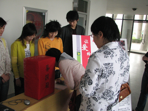 上午八点整,院领导以及其他各部门的领导老师陆续来到捐款处,献出了自己的一份爱心。