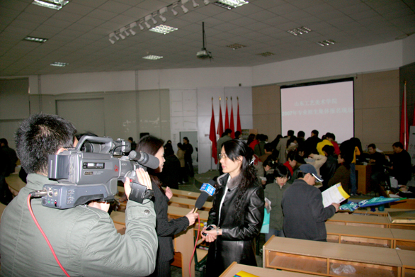 山东教育电视台记者在集体报名现场采访了招生办公室王霞主任,王主任介绍了永利官网推出的各项新举措,她表示,永利官网将本着确保考生安全、一切为考生服务的宗旨,采取方便考生报名、考试的新措施,并坚持往年行之有效的办法,保证专业考试的公正、公平、公开。