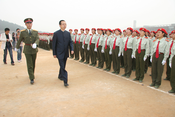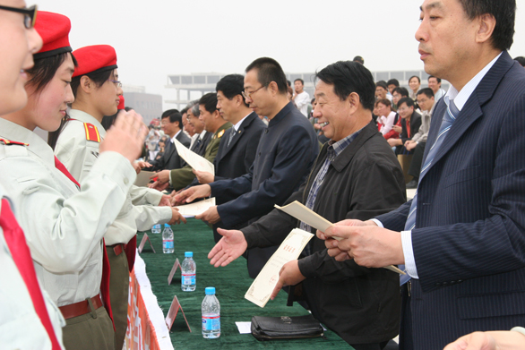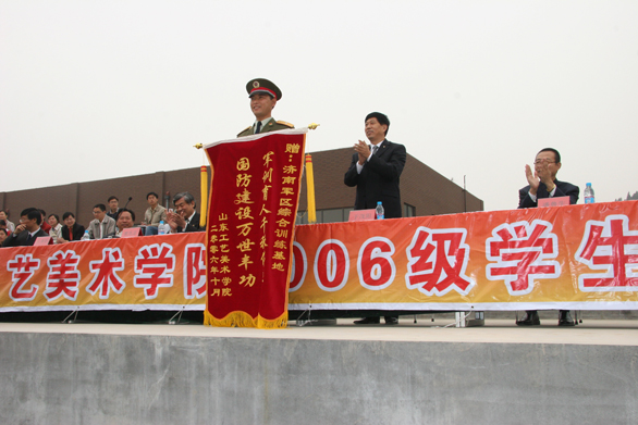 10月20日上午,2006级学生军训汇报表演大会在长清校区体育场举行,校领导于茂阳、