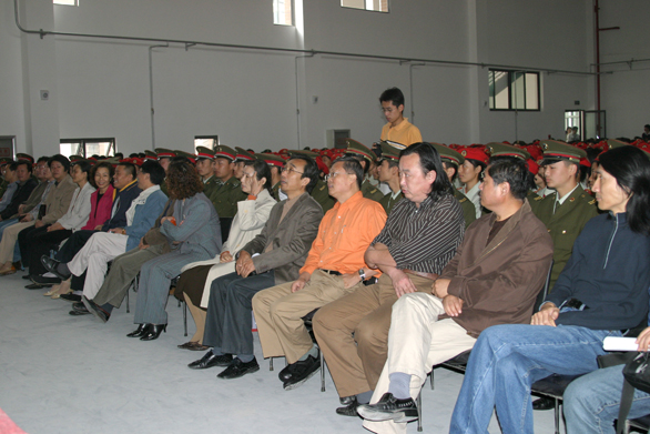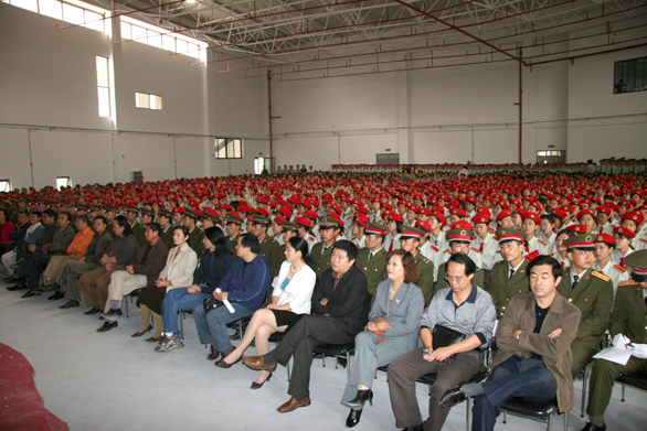 、郭兆志、李世平、王秀存、李新、张云龙出席典礼,各部门、各二级学院负责人、军训团团长赵法云、济南军区综合训练基地全体教官及2006级新生1500余人参加典礼。典礼由学生处处长吴焕文主持。