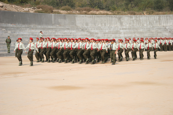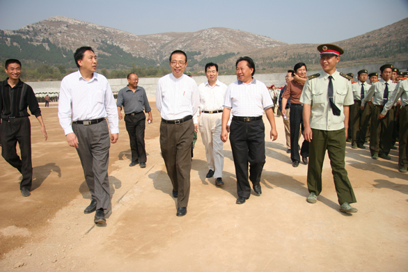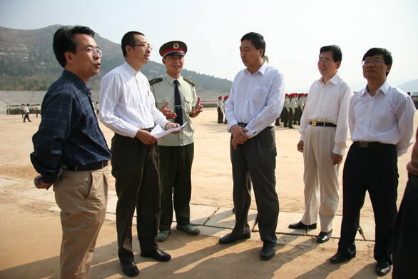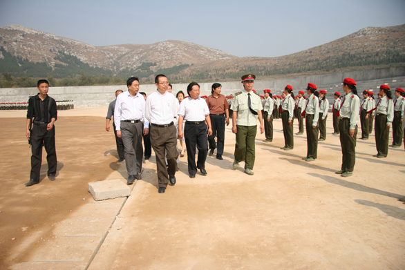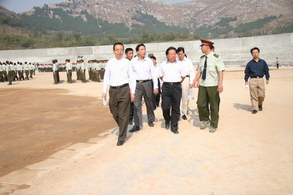 ,党委副书记兼纪委书记李世平,副院长王秀存、李新、刁在祥、张云龙在院长助理、办公室主任王立果,学生处处长吴焕文、基建处处长张军波等陪同下前往各营训练场地视察军训工作。
