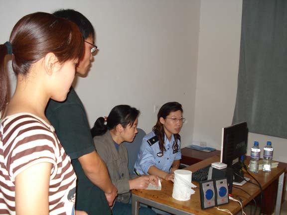 长清校区,由于校区距市区路途较远,办理身份证手续需要往返80多里等种种原因,迟迟没有办理第二代身份证,给日常生活带来了诸多不便,学生的身份证换代存在很大难度。学校领导对此项工作高度重视,职能部门积极协调,从方便学生,服务学生,确保学生人身安全等角度考虑,积极与济南市公安局户政处、历下公安分局户籍科、千佛山派出所等部门协调,争取为学生提供上门服务。在各部门的多方努力下,9月15日上午,由历下公安分局户籍科李达科长、王荣华副科长、千佛山派出所吴阳副所长等一行七人组成的身份证信息采集小组,在永利官网长清校区设立身份证信息临时采集点,开始对04级学生的进行身份证信息采集(学生身份证照相)做各项准备工作,工作人员克服各种困难,利用最短的时间调试完成信息采集系统,15日下午,信息采集工作按计划正式开始。