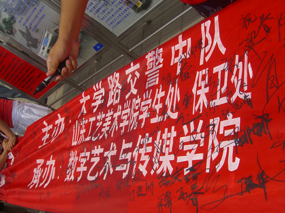 为全面贯彻落实《yl8cc永利官网关于组织开展“安全教育月”活动的通知》要求,让师生更多地了解交通安全方面的法律法规,自觉遵守《道路交通安全法》,提高交通安全意识, 2006年6月23日,由长清区公安分局大学路交警中队、学生处、保卫处主办,数字艺术与传媒学院承办的交通安全图片展在长清校区举行。此次活动将枯燥的法律知识以琅琅上口的“顺口溜”形式表现出来,结合形象的动漫图片,通俗易懂,让人过目不忘,吸引了众多师生驻足观看,踊跃签名,纷纷表示在日常生活中自觉遵守交通法规,珍爱生命,远离交通事故。此次活动收到了很好的宣传教育效果,为创建平安、和谐校园打下了良好的基础。