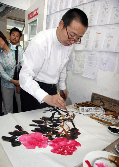 院长还即兴作画一幅,并同工笔画专业学生合影留念。